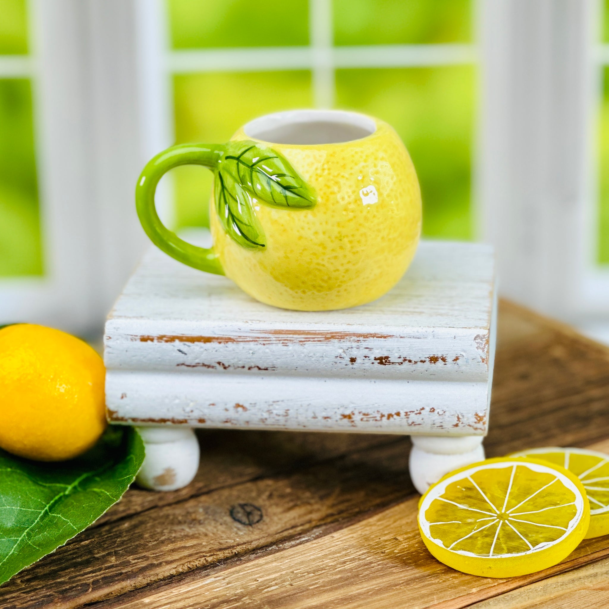 Add some zesty zing to your kitchen with our Lemon Espresso Mug! This adorable mini cup looks just like a real lemon and features two embossed green leaves and a green handle. Enjoy a delicious espresso in this citrusy cup, or use it to brighten up your decoration – either way you'll be sure to make a statement! Squeeze the life out of the day and start sipping!