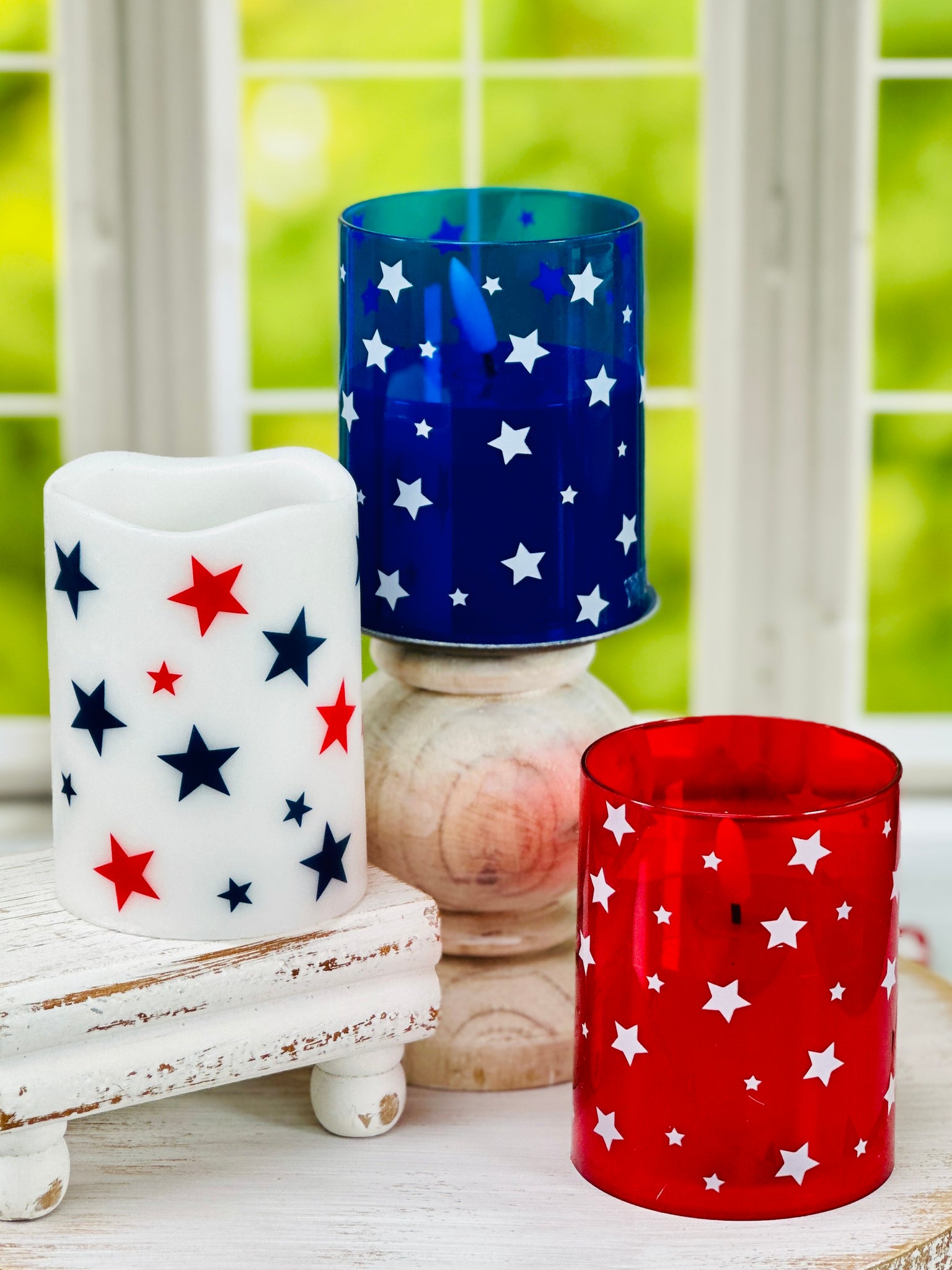 Celebrate your freedom with the Star Timer Pillar Candles! These patriotic LED candles look great with their red and blue stars, while adding a touch of warmth to your decor. And no need to worry about constantly turning them on and off - they come with a handy timer candle feature that takes the work out of it.