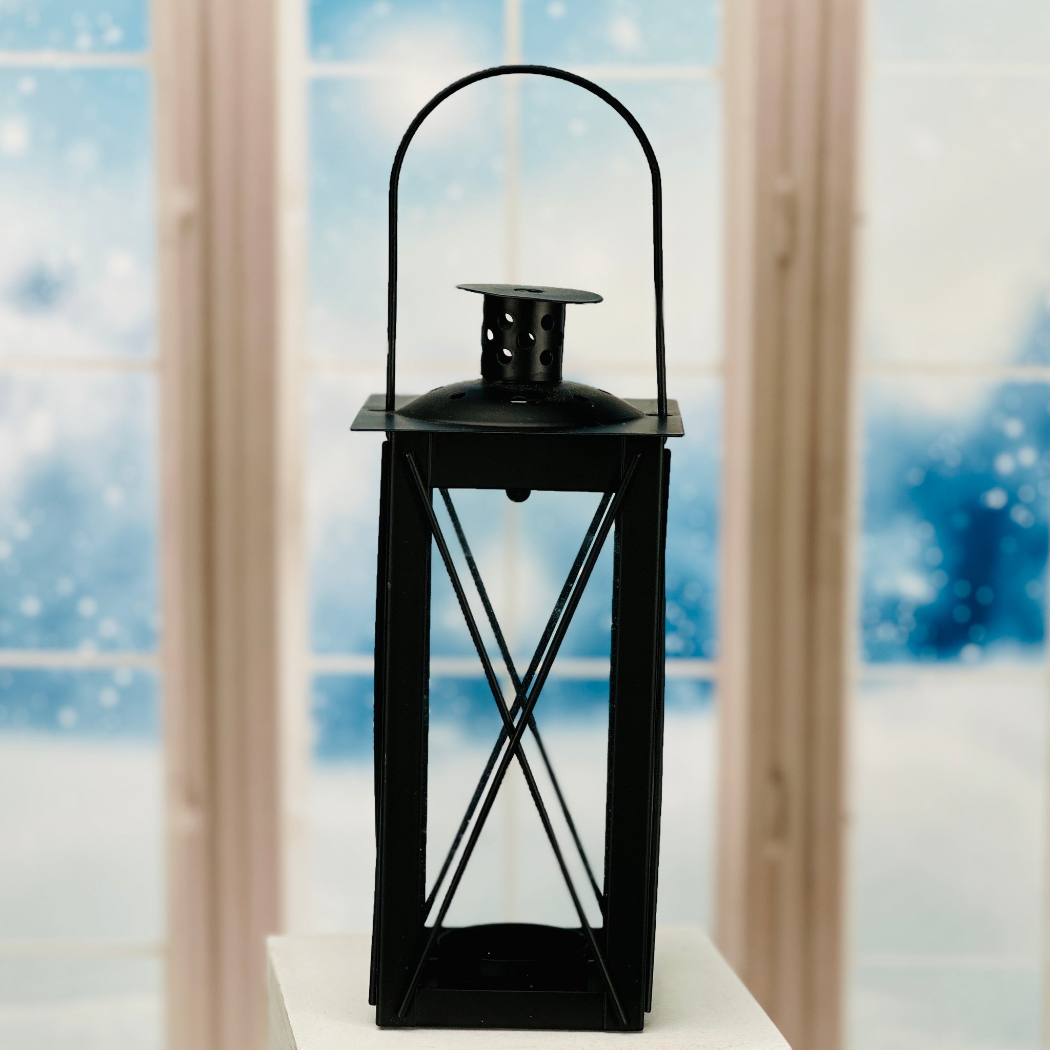 Bring a warm and cozy holiday atmosphere to your home with our Black Metal Lantern Candle Holder. Its classic design, complete with square edges and clear panels, adds a festive touch to any room. Simply lift the top off and add an LED or non-lit tea light candle to create a subtle and inviting glow. Perfect for pairing with other Holiday or Seasonal decor!