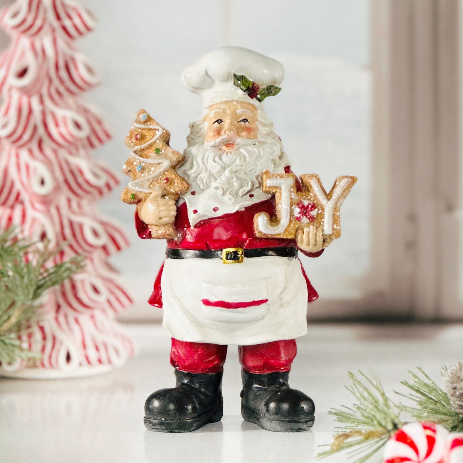 Let's bake up something delicious this Christmas with Chef Santa. This delightful little resin figurine is ready to whip up some fresh, festive gingerbread - no need to worry about a mess, he'll take care of it all! Let the Gingerbread Chef Santa help create some holiday cheer in your home this season!